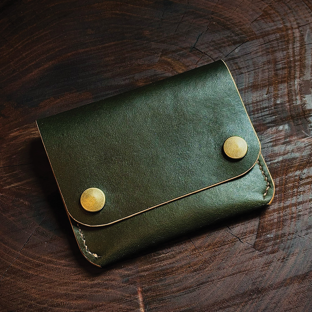 Designed to hold cards and folded cash, the Double Snap Wallet favors simplicity, durability, and the tactile feel of well-finished leather—ideal for anyone who prefers a compact, handmade wallet that breaks in beautifully.