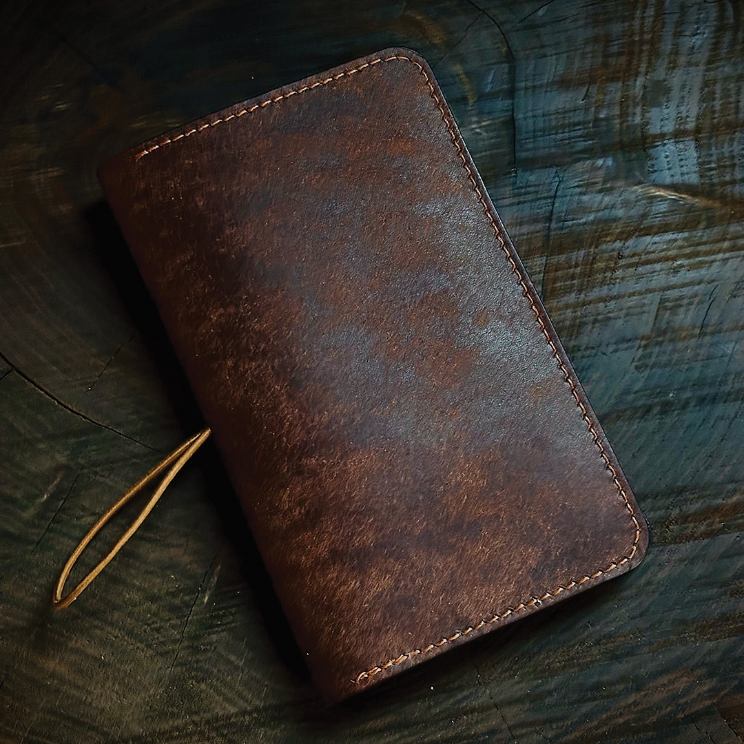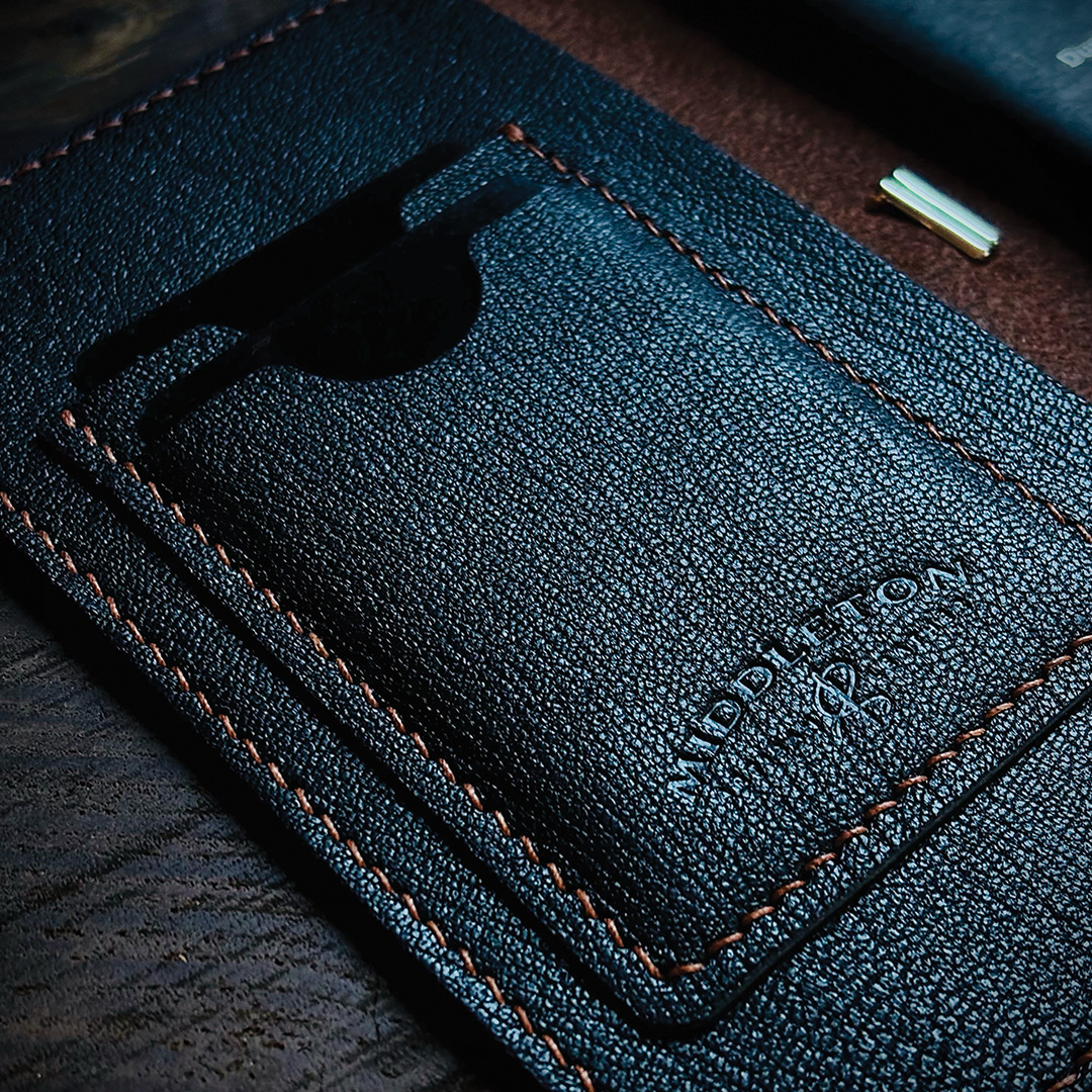 Each piece is hand-cut, stitched, and finished in the shop, with edges burnished for a clean profile that disappears into a pocket or bag. The leather will pick up a soft patina over time, darkening and smoothing where you touch it most.